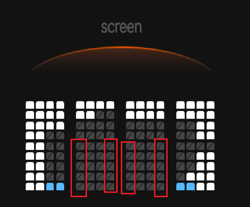 스크린X가 포함된 영화라면 H~I열이 명당입니다. 다만 환경효과에서 손해를 크게 보게 되죠.